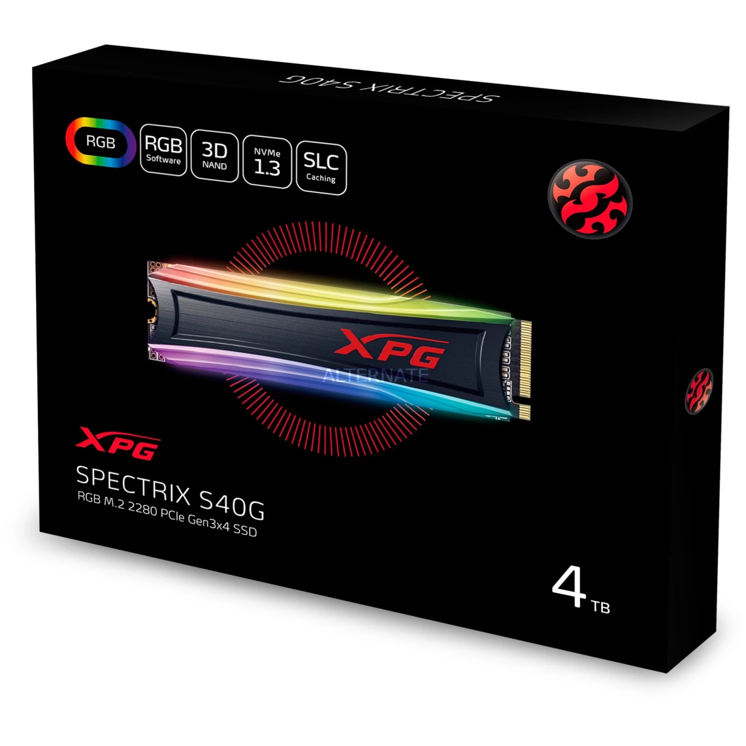 M.2 SSD ADATA XPG Spectrix S40G RGB 4 TB, SSD (schwarz, PCIe 3.0 X4, NVMe 1.3, M.2 2280)